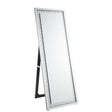 Rectangular Mirror (Floor), Stand Not Included • Beveled Mirrored Finish, Clear Glass with Faux Crystal Inlay •• CONSTRUCTION •• Mirrored Frame, Trim: 4mm Clear Glass with Faux Crystal Inlay: Mirror (Internal Mirror Size: 16" x 57"H), MDF • Glass: NOT Tempered, NOT Beveled