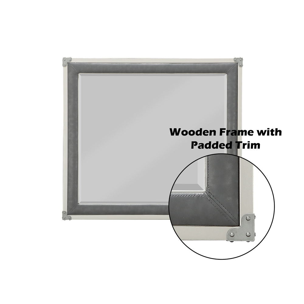 Mirror with Beveled Edge (5mm Thick) Shape: Rectangular Orientation: Landscape (Horizontal) Wooden Frame with Padded Trim