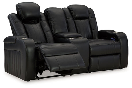 Caveman Den - Power Reclining Loveseat with Console/ Adj Hdrst - Midnight
