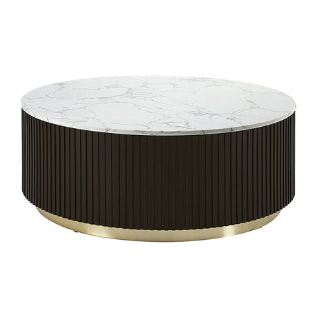 Clayten - Coffee Table - White Natural Marble Top & Espreeso Finish
