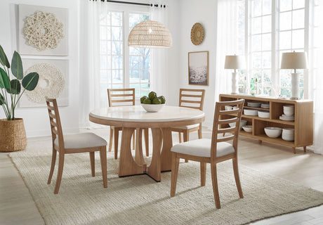 Escape - Round Dining Table - Glazed Natural Oak / Black Metal Trim
