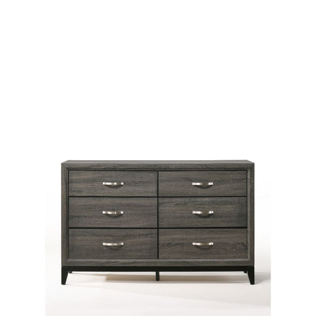 Valdemar - Queen Bed - Brown Fabric & Weatheted Gray Finish