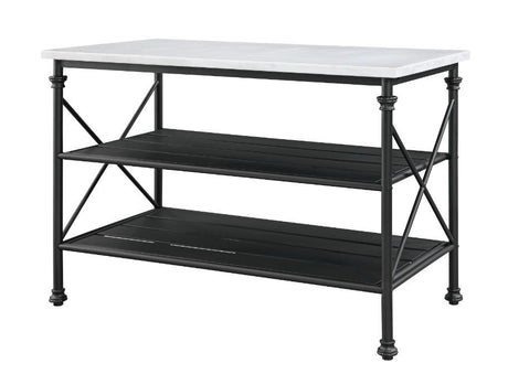 Brahm - Kitchen Island - White Marble & Gray Finish