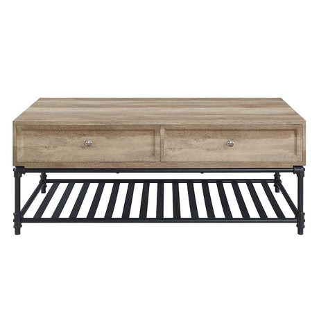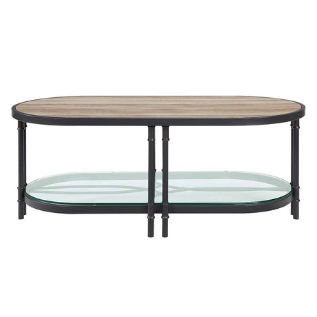 Brantley - Coffee Table - Oak & Sandy Black Finish - Metal - 18"