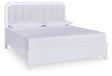 This upholstered panel bed is a showstopper, bringing a touch of modern glamour to your sanctuary. A sleek finish, paired with the cushioned headboards fabric with metallic silver accent threads, creates a sophisticated feel. Built-in LED lighting adds a soft glow, making it even easier to get ready in the morning or wind down at night. Its a simply stunning way to achieve the bedroom of your dreams.