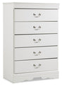 Anarasia - Five Drawer Chest - White is backordered and will ship as soon as it is back in stock.