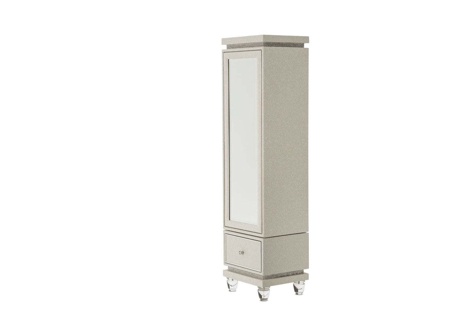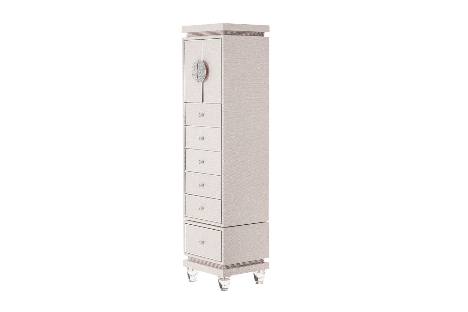 Glimmering Heights - Upholstered Swivel Lingerie Chest - Dove is backordered and will ship as soon as it is back in stock.