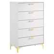 Kendall - 5-Drawer Bedroom Chest - White is backordered and will ship as soon as it is back in stock.