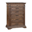- Rich Walnut Finish: The heirloom finish is achieved through a multi-step process that includes mild distressing, wire brushing, and charcoal glazing that enhances the natural beauty of the wood.