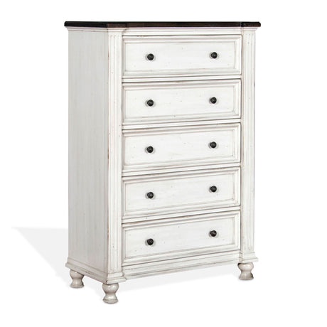 Carriage House - Chest With 5 Drawers - Cottage White / Europen Dark