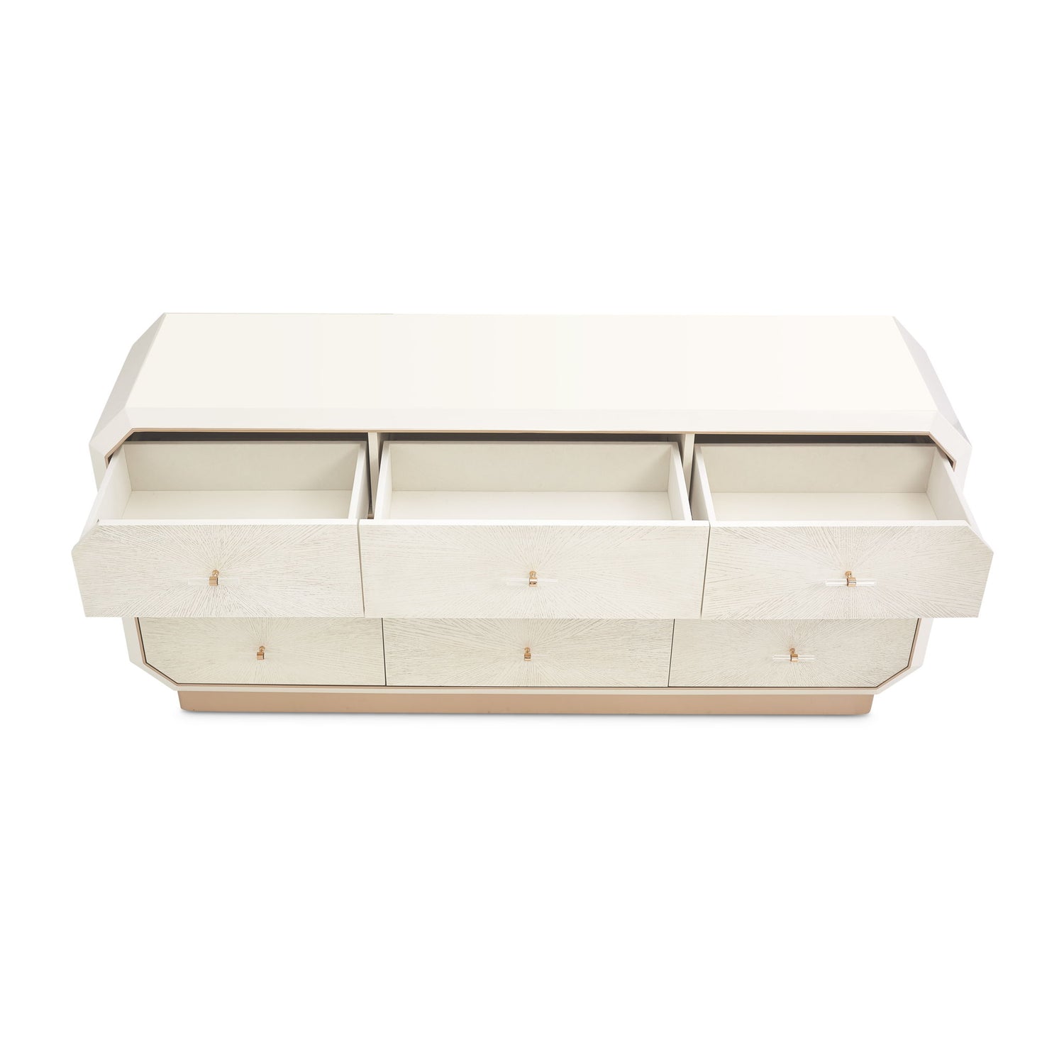 La Rachelle makes the most of your space! This Dresser is all about classy angles and soft details. From the subtle shine on the finish to the delicate acrylic drawer pulls, this dresser is made with elegance in mind.