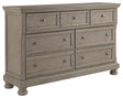 Lettner - 7 Drawer Dresser, Mirror - Light Gray