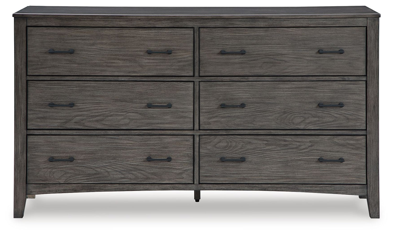 Cool and clean, yet warm and inviting. This dresser has so many standout qualities, making it an inspired choice for your dream destination. A prime example of “casual contemporary” style at its very best, the designer piece is dressed to impress with an embossed wood grain texture. Spacious drawers with fully finished interiors offer ample storage for your wardrobe and spare bed linens. And the medium gray-brown finish with a blackened wood grain is wonderfully easy on the eyes.