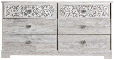 Paxberry - Six Drawer Dresser - Medallion Drawer Pulls - Whitewash