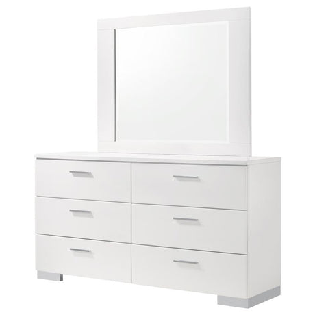 Felicity - 6-Drawer Dresser With LED Mirror - White High Gloss