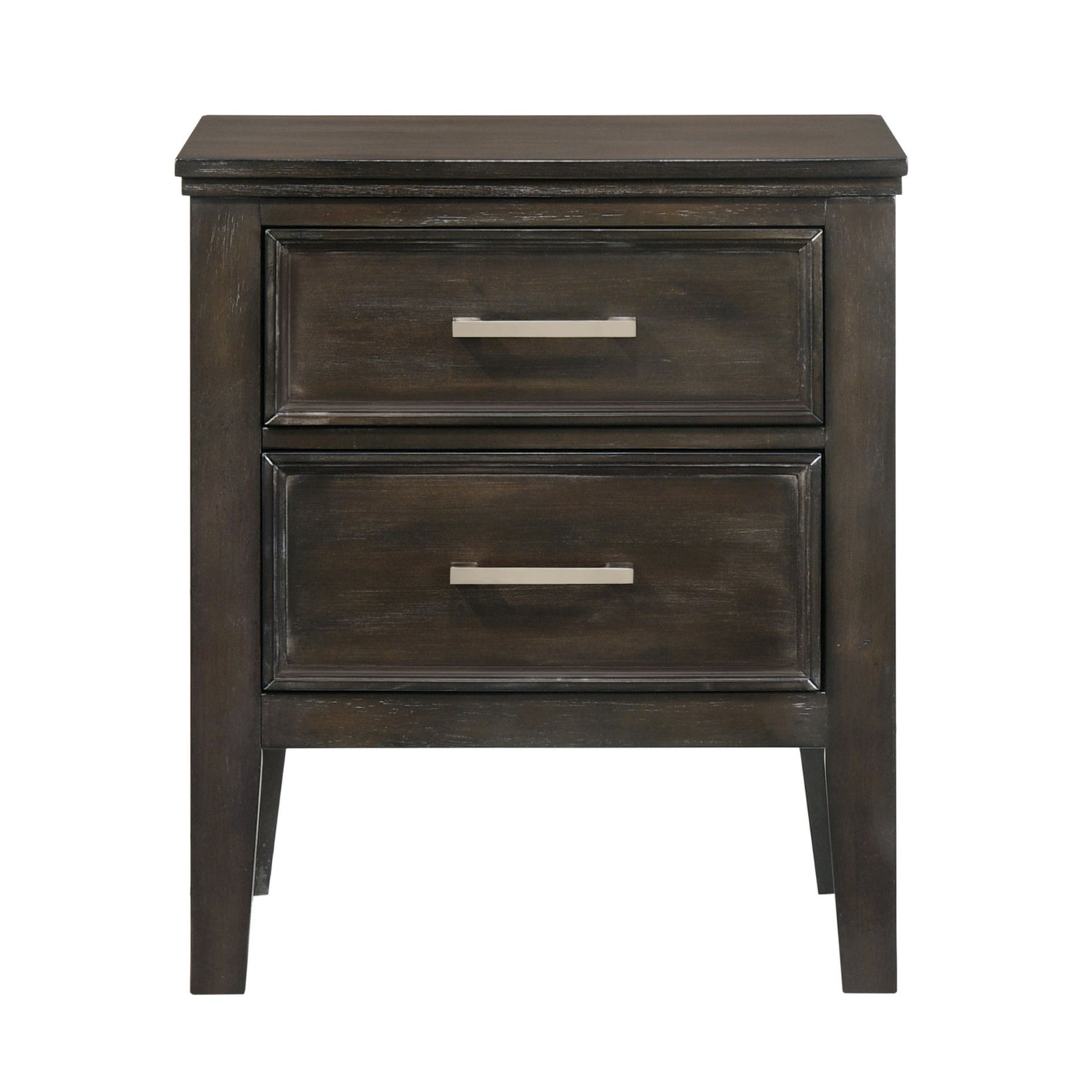 The Andover Two Drawer Wood Nightstand combines durability, functionality, and timeless style, making it a perfect addition to any bedroom. Expertly crafted from solid Rubberwood, manufactured woods, and wood veneers, this nightstand is built to last while showcasing the natural beauty of real wood. The rich finish, achieved through a meticulous multi-step process including sand-throughs and white glazing, imparts a weathered yet sophisticated appeal, beautifully highlighting the wood’s natural grains and unique characteristics. The clean lines of the Andover nightstand are enhanced by sleek, elongated metallic handles that add a touch of sophistication, standing out against the warm, dark wood finish. Framed drawer fronts add depth and dimension, while the sturdy block-style legs provide a solid and stable foundation, underscoring the nightstand’s robust and enduring structure. The drawers glide smoothly on Kenlin drawer glides, ensuring effortless operation, and feature dovetail joinery, a true mark of superior craftsmanship. This nightstand not only offers practical storage but also elevates the style of your bedroom with its modern rustic design.