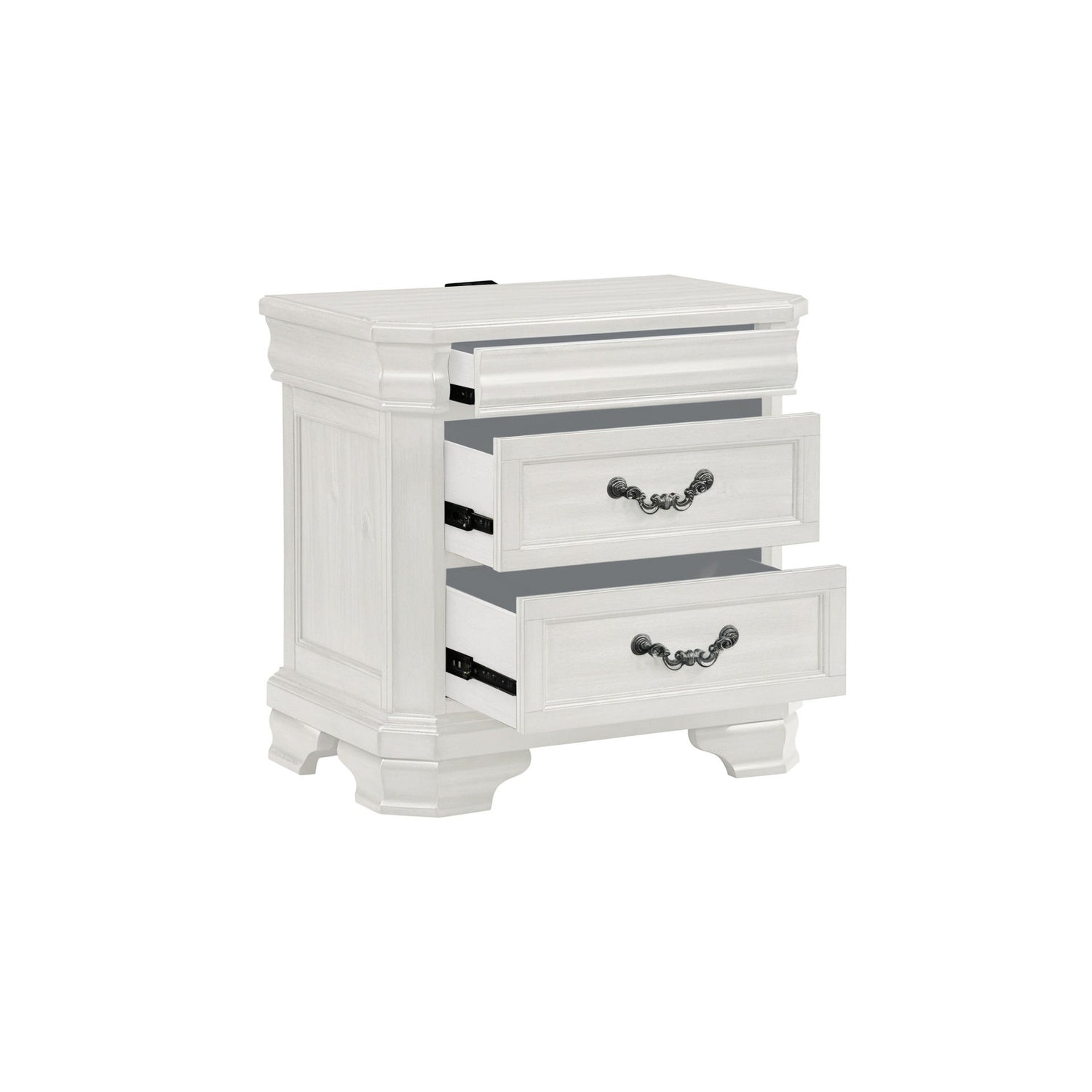 Introducing the Lyndhurst Nightstand — an essential piece for any bedroom sanctuary. Crafted from solid Acacia, Acacia veneers, and manufactured wood, this nightstand ensures lasting durability. Its heirloom finish, achieved through meticulous distressing, burnishing, and glazing, enhances the wood's natural beauty. Substantial moldings, bracket feet, and ornate hardware define its masterful style, making it a statement piece in any space. Inside, drawers are crafted with English dovetail joinery, full extension drawer glides, and finished interiors, with velvet-lined top drawer to protect delicate items. Experience modern convenience with the two-drawer design, equipped with a USBC charging station to keep your devices running smoothly. Plus, a discreet velvet-lined compartment hides behind the molding, providing additional storage for jewelry. Elevate your bedroom decor with the timeless elegance and functionality of the Lyndhurst Nightstand.