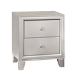 A shimmering champagne finish gives this Nightstand a touch of glam you will appreciate in a bedside companion. This two-drawer table has easy pull nickel hardware and two drawers for storing books, glasses or remotes right by your bed. Brighten up your bedroom with the sparklingly beautiful Omni Nightstand.