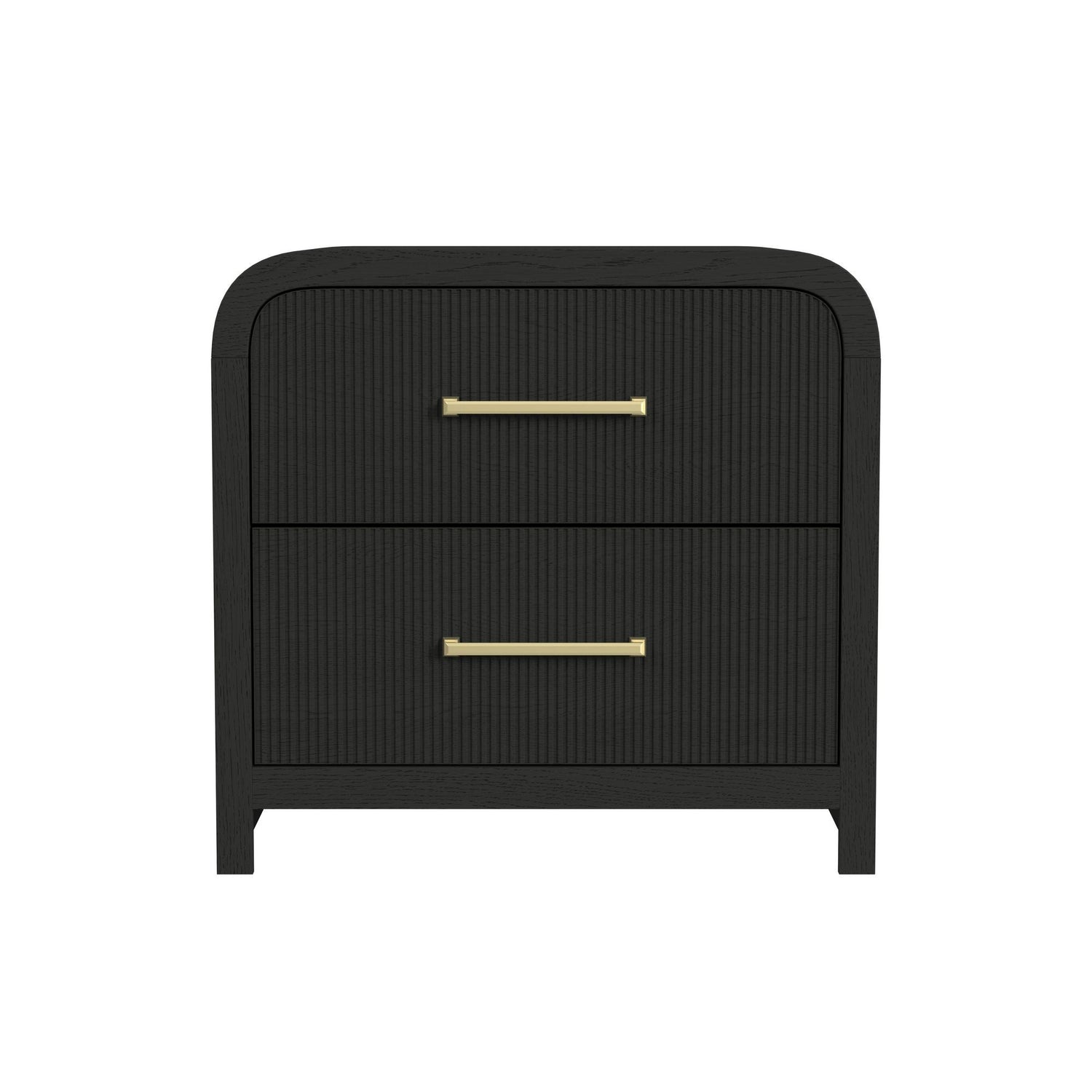 Enhance your bedside with the stylish Ridgemont 2-Drawer Nightstand with USB. Finished in a versatile finish with wood grain detailing, this piece effortlessly adds elegance to your space. Sleek, rounded corners and drawer fronts with decorative fluting create a modern, refined aesthetic, and the spacious drawers are adorned with bold, metal pulls. The nightstand features a convenient USB port, perfect for easy device charging, while the felt-lined top drawer offers added protection for your essentials. With clean, minimalist lines, the Ridgemont 2-Drawer Nightstand with USB combines function and modern design, making it an ideal addition to your bedroom.
