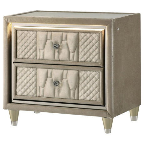 Lorient - 2-Drawer LED Nightstand With USB - Ivory And Camel