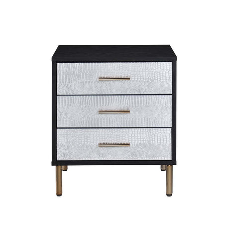 Nicola - Nightstand - Silver PU & Black Finish