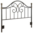 Timeless elegance takes form in this graceful metal headboard, detailed with scrolling curves and a floral medallion centerpiece. The rich black powder coated finish is beautifully contrasted by warm bronze accents, offering a vintage-inspired allure that blends seamlessly with both classic and transitional spaces. Designed with versatility in mind, the integrated adapter plate effortlessly accommodates both queen and full size bed frames, making it an enduring piece for any bedroom.