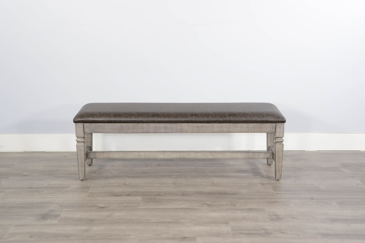 This Homestead Hills bench with cushion seat was sturdily built to last and finished in a beautiful Tobacco Leaf and Alpine Grey finish.