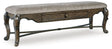 From its ornamental appliques to its large scale, this dining bench makes a bold statement. With ornately shaped legs, a plush cushioned seat and a storage drawer, the opulent bench wows with stunning style. The look is timeless. The feel? Right at home.