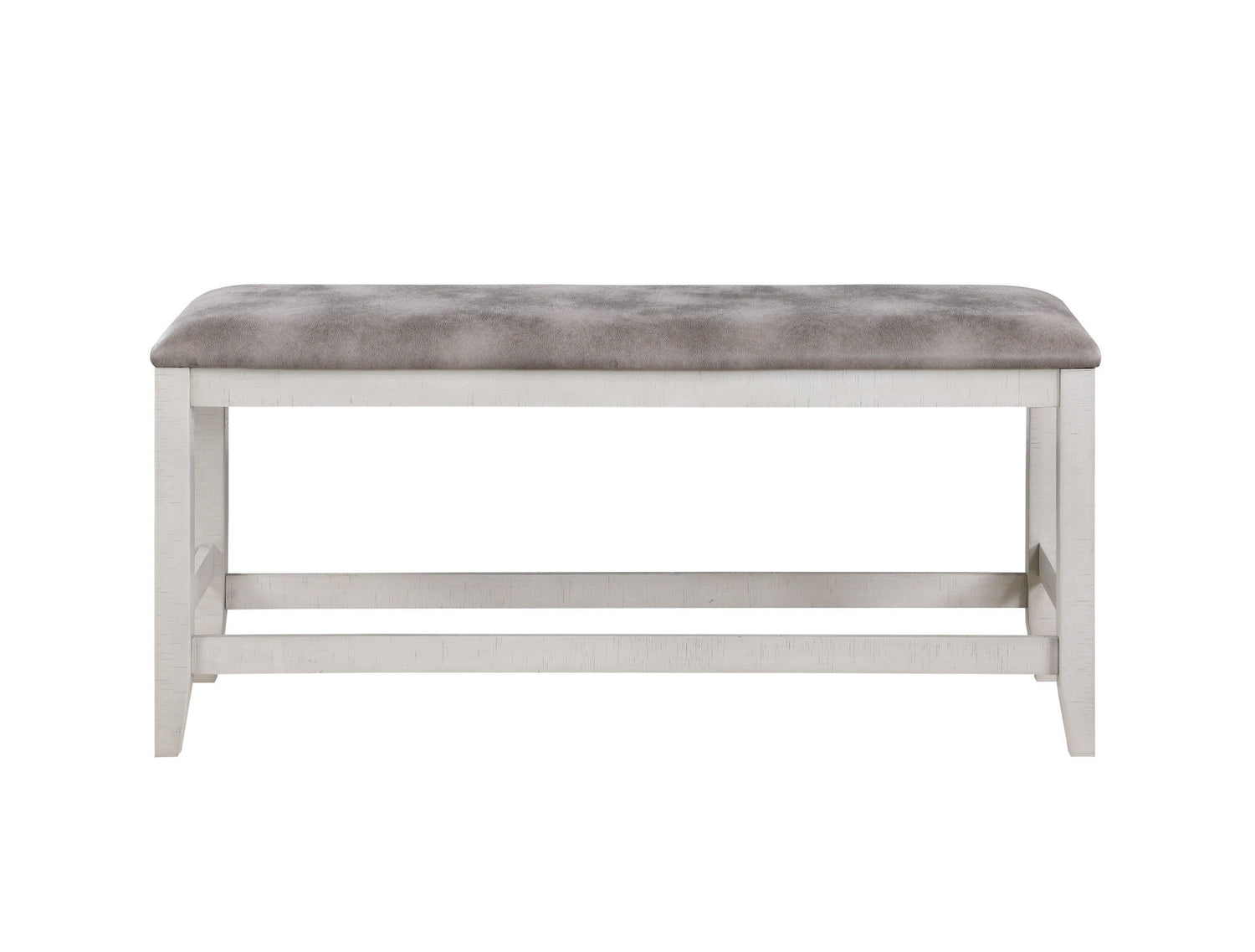 The Richland Counter Bench in Stonewash Gray is a versatile seating option that blends durability, comfort, and style. Expertly crafted from solid Rubberwood, durable manufactured woods, and genuine Acacia wood veneers, this bench is built to withstand everyday use while showcasing the natural beauty of real wood. The hand-applied vintage cream finish highlights the unique grain patterns, giving it a timeless and classic appeal. The plush upholstered seat cushion provides a cozy and inviting place to sit, making it perfect for family meals or casual gatherings. Pair it with the Richland dining set or use it as a standalone piece for added seating with style.