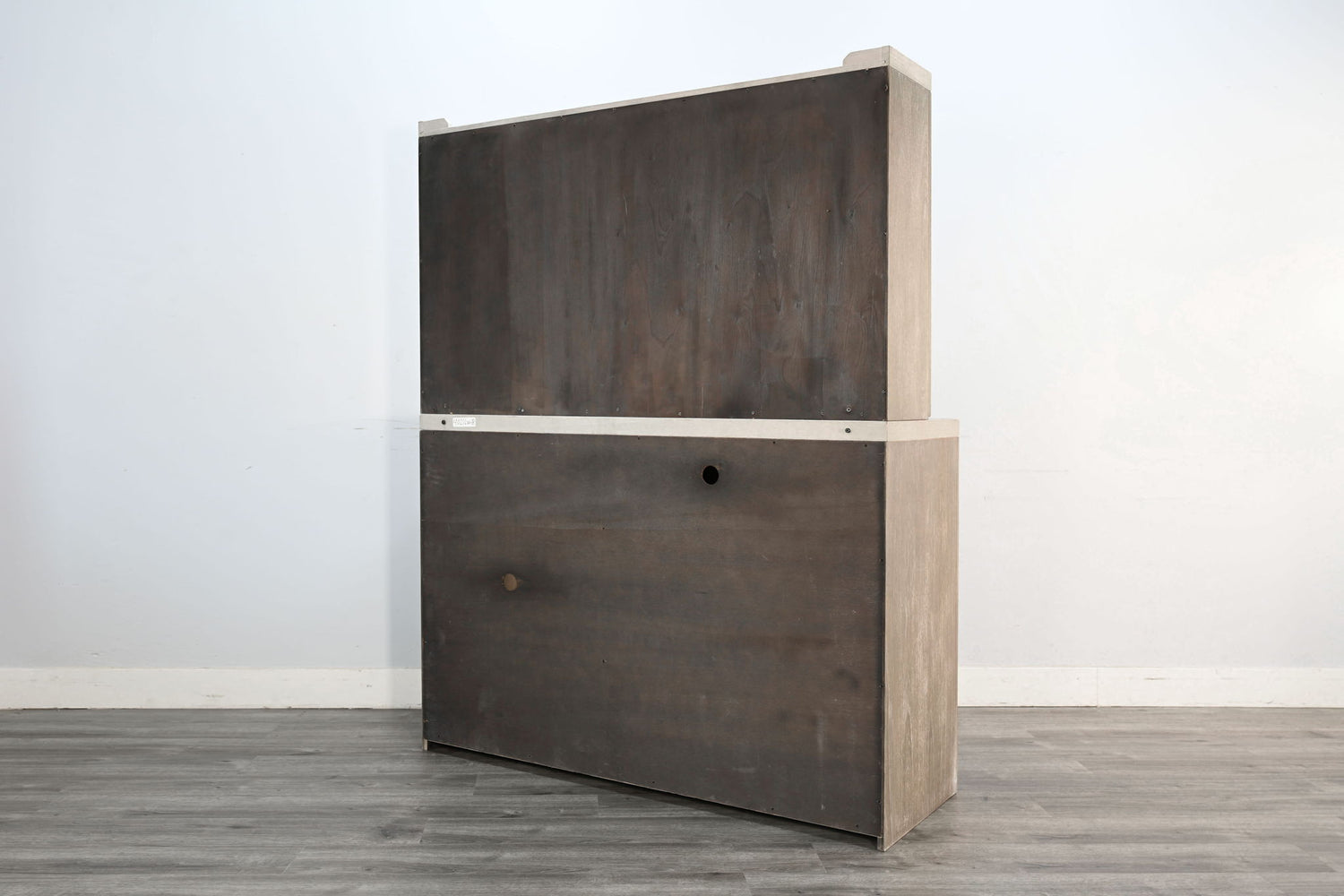 Rustic Wood Bar Cabinet With Hutch - Light Gray / Wheat