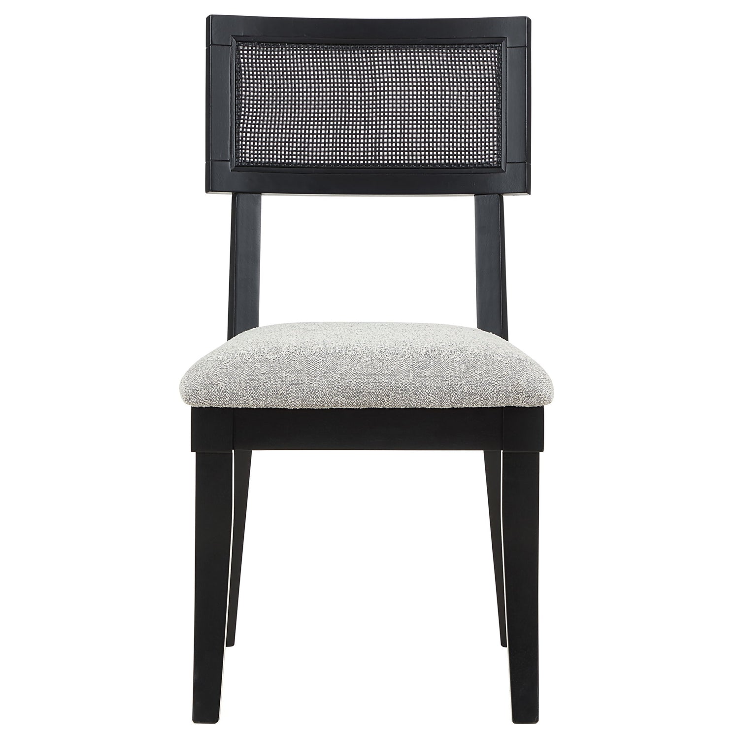 With a nod to old Hollywood glamour, the Colvin Cane Back Chair exudes sophistication. A cane back and sumptuous boucle softens the modern profile with a casual touch while hile the finish adds a touch of sophistication. The elegant modern cabriole leg supports a 2..5″ cushioned seat makes sure you don’t have to suffer for your style. Elegant, glamorous and sophisticated but with casual touches that keep it from being stuffy, that’s Colvin.