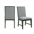 The Donovan Standard Height Side Chair Set in going to look fantastic in your home! This set comes with two, armless chairs. These chairs are upholstered in a gray fabric, that pairs beautifully with the black, wire brush finish on the legs. Chrome nail head trim, outlines the edges of the chairs, instantly adding extra flair to this already stylish pair. The solid chair back is classic in design and will provide hours of comfort thanks to its foam cushioning. Add these stunning chairs to your dining table today for a look you'll love day after day!