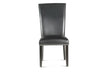 An elegant upholstered Side Chair in black leatherette, Finley sparkles with a nickel nailhead trim that is anchored with an espresso wood finish. A flared back adds sophisticated charm to the design while also ensuring a comfortable seat whether dining, at a desk or as a guest chair in the family room.