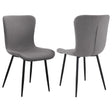This dining chair combines sleek modern design with practical comfort. Upholstered in a grey linen-like fabric, the seat and backrest are crafted for easy care and long-lasting use. The contoured design offers ergonomic support, while the foam-padded seat ensures comfort during meals. Sturdy black powder-coated metal legs provide a minimalist aesthetic with dependable durability. Constructed from plywood, foam, fabric, and metal, this chair is a versatile and stylish addition to any dining space.