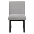 The Magnolia Side Chair offers modern styling in a comfortable, easy-care package. This smartly tailored upholstered chair features side welting and a line-look polyester cover for effortless cleaning.. Guests will appreciate the 4-inch cushioned seat as they dine, supported by the solid wood twin scissor leg base. With its blend of comfort and beauty, the Magnolia Side Chair effortlessly enhances any dining space, ensuring both style and practicality.