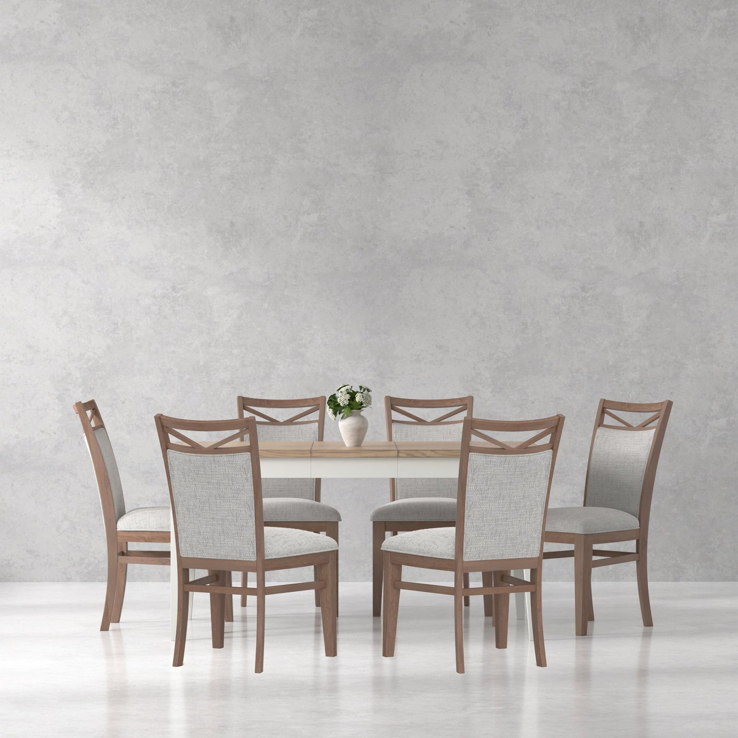 Americana Modern Dining - Rectangular Extendable Dining Table With 6 Upholstered Dining Chairs - Cotton