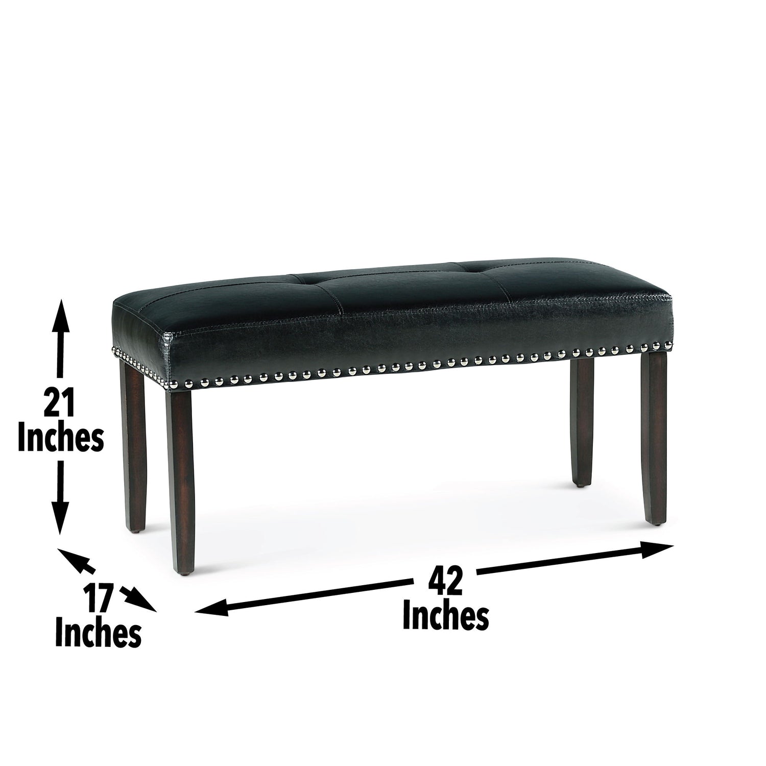 • Styling details include pewter nailhead trim chairs upholstered in easy-care black polyurethane with tapered legs that complement the tapered dining table legs