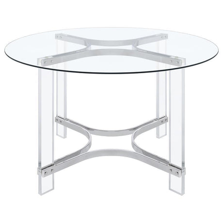Keeling - 5 Piece Round Glass Top Acrylic Dining Set - Chrome