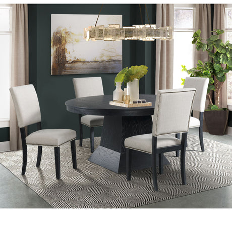 Leandro - 7 Piece Round Dining Table Set - Burnished Black