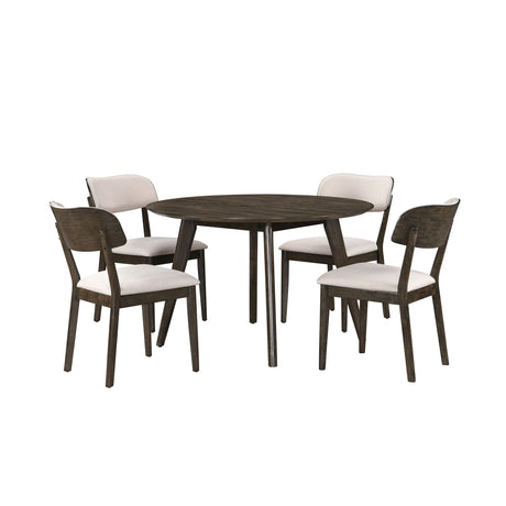 Rex - 48" Round Dining Table & 4 Open Back Chairs - Dark Brown