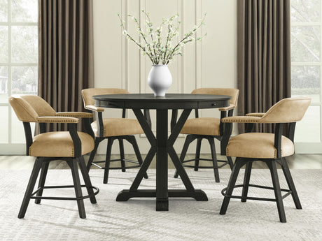 Rylie - 6 Piece Counter Dining Set (Counter Table With Game Top & 4 Counter Chairs) - Black / Sand