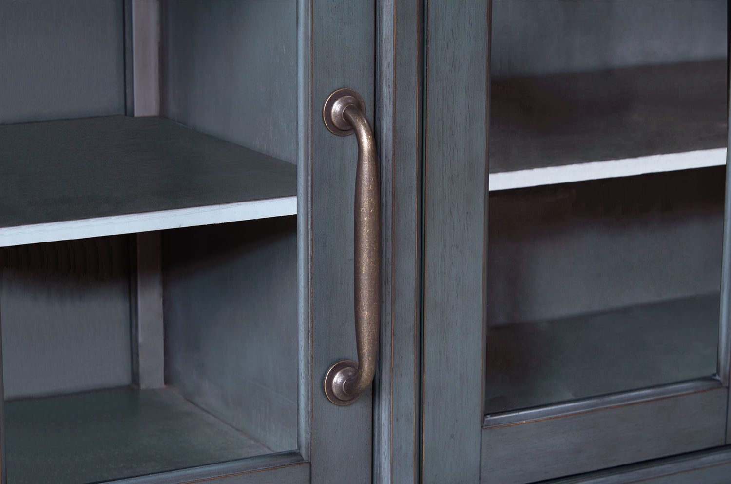 The Americana 66 inch Server boasts a refreshing coastal twist on traditional style. Skillfully crafted from Rubberwood Solids and Birch Veneers, the subtle distressing, Corduroy Blue finish and Antique Pewter hardware give this Buffet Cabinet an updated look with a timeless heirloom feel. Ideal for storing dishes, linens and flatware, this Sideboard features four framed glass doors, three shelves and three drawers. Just like Baseball, Apple Pie and Rock & Roll, the Americana Server will become a beloved favorite in your home. Fully assembled upon arrival, this piece from Bridgevine Home is ready to unbox and enjoy.