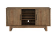 Store all your stuff in the multi-function blended style Server from the Atmore collection. Elements of industrial and rustic design mix with Mid-Century accents and rustic finish application for a piece of furniture as unique as you are. Sliding front doors allow the configuration of your choice and wire escape backs make this unit great for Entertainment or Dining use. A Dark Driftwood finish and wood score distressing add to the rustic design of this versatile piece.