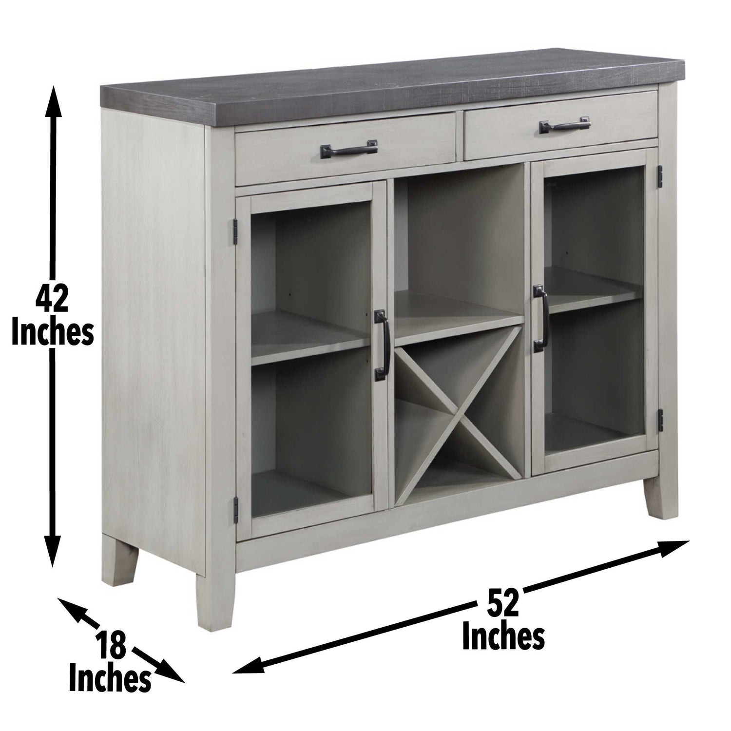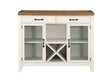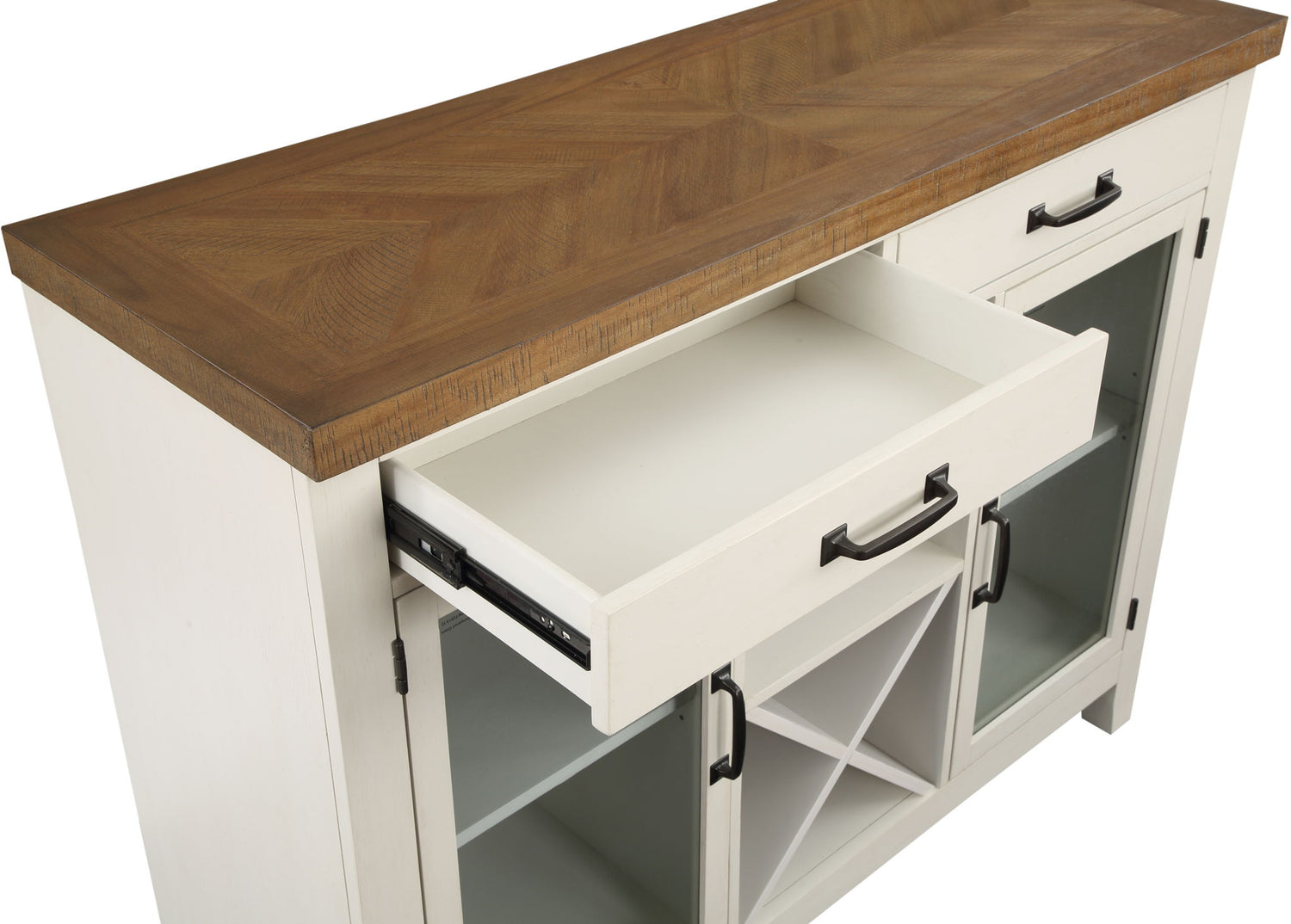 Instant storage and design come together in the Hyland Server. A two-tone Milk and Honey finish add a neutral touch to any room while offering generous storage and display area. Great for assisting in the dining area, this piece also works well as a TV Stand or Media Center with glass doors for remote control access. Adjustable shelves ensure a secure fit for plates or electronics. Removable wine rack offers excellent bottle storage or an open compartment when removed.