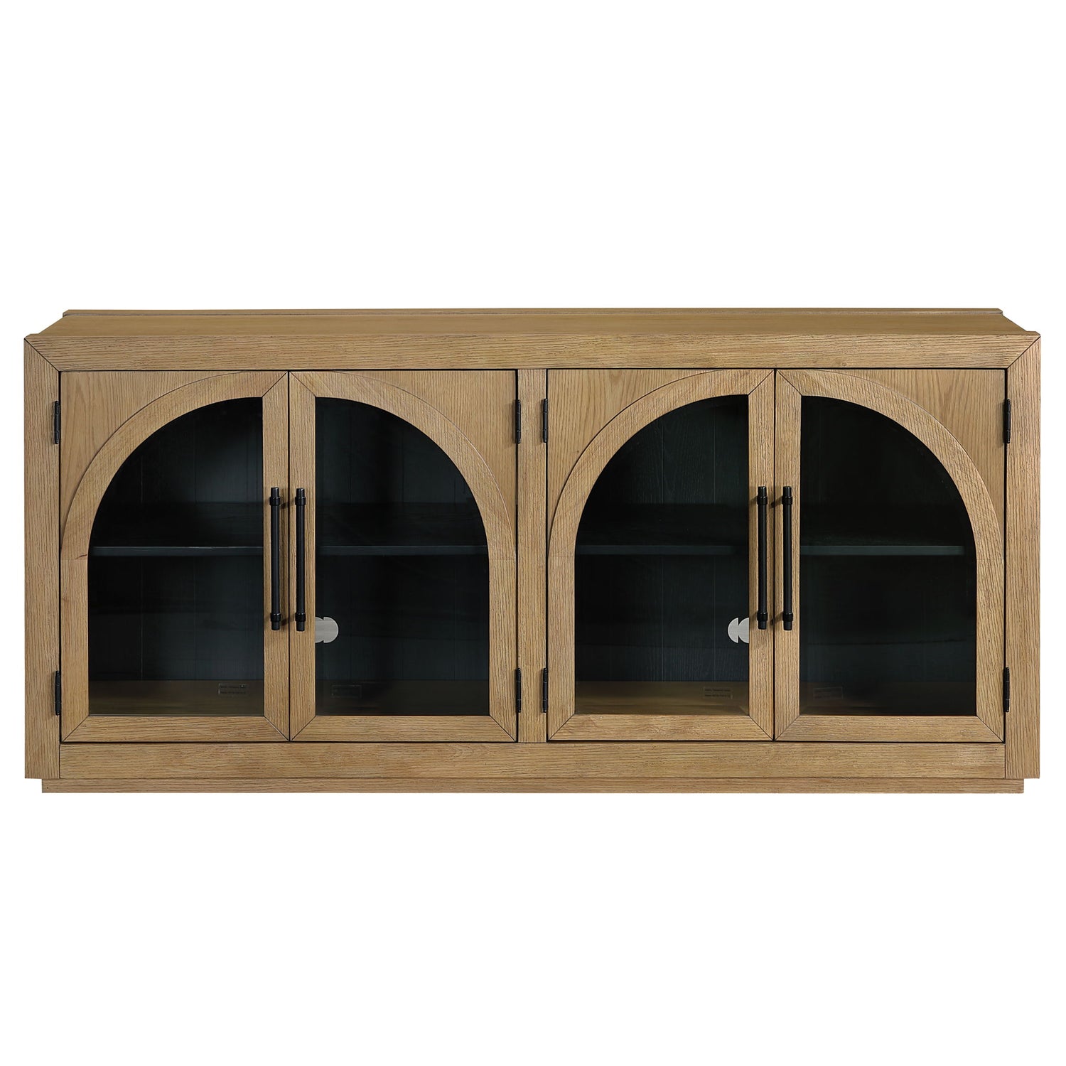 A masterpiece of versatility and style, the Magnolia Server reveals a world of display possibilities behind beautiful Cathedral glass doors. Hand-stained in a striking weathered finish with a contrasting interior, this cabinet features adjustable shelves and hidden cable management for a seamless transition from a dining room sideboard, to a living room entertainment center, or even a stunning hallway console The clean lines and modern style of the Magnolia Server adds elegance, sophistication and storage to any room in a home.