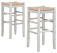 Bring the vintage casual vibe you love to the kitchen with this bar stool. A stylish seating solution in a rubbed-through finish, this charming stool completes your dining space with ease. The woven seat and wood stretchers create an effortlessly beautiful look with endless possibilities.
