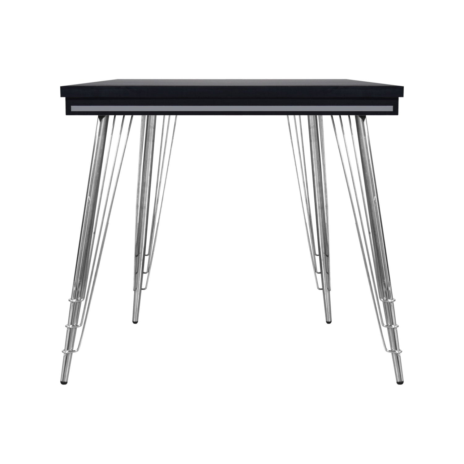 - Contemporary Minimalism: The table features a sleek rectangular black top with clean lines and stainless steel hairpin legs, embodying a minimalist and modern aesthetic.