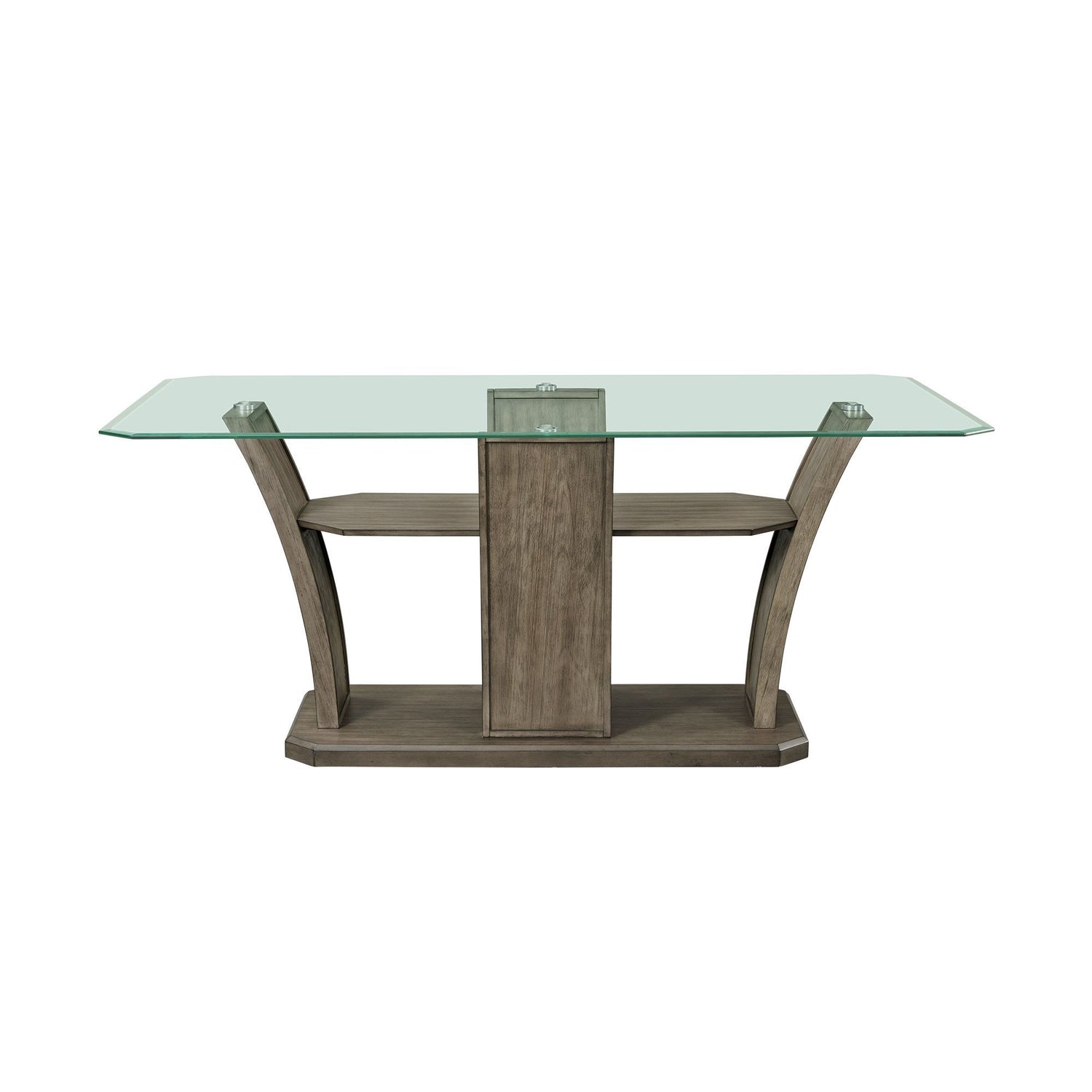 The simply stunning Dapper Rectangle Counter Dining is perfect for entertaining multiple guests at dinner or having a casual brunch. Topped off with a sleek, clear glass tabletop, this rectangular glass dining table displays an abundance of style. The arched walnut legs come with a storage shelf through the center for added support, and the sharp, minimalist lines add a chic, modern vibe to your space. Dress up this exquisite dining table with a floral centerpiece for a pretty pop.