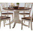 The Dylan collection features round table top with empire pedestal base, carefully crafted with selected wood and veneers in buttermilk and oak finish. Matching side chairs offer overlapped "X" backrest design, wooden seat top, and turned front legs providing a warm and cozy country style for your dining room. (Table and Chairs Sold Separately)