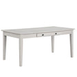 The Echo Rectangle Dining Table blends style, durability, and function. Crafted from solid Rubberwood and engineered woods, it offers strength and the charm of Oak veneers. A driftwood finish enhances the wood grain with pale gray and white wash tones for a warm look. Built-in storage includes a central drawer for flatware and lift-top compartments at both ends for linens or games. At 66" long, it seats six comfortably, making it perfect for intimate dinners or lively gatherings